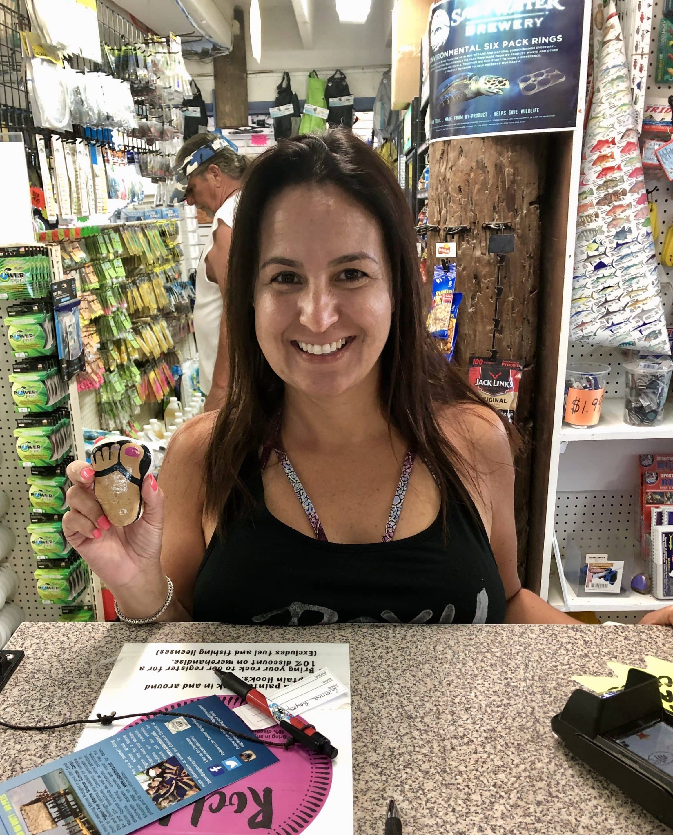 If you are a rock painter or decorator, we accept rocks as well to get the discount. So, you can paint your way to a discount and we then hide your rock for someone else to find and get a discount. It is a unique way to pass it forward to another fellow fisherman, diver or shopper.