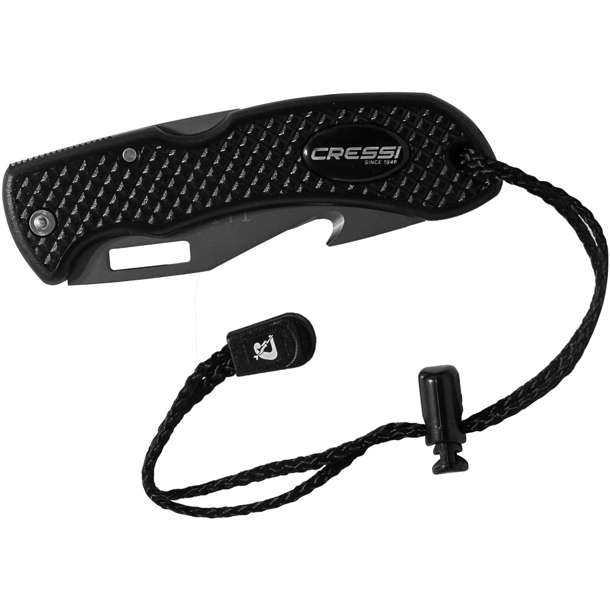 Introducing the Cressi Chaku Knife with a sleek black-titanium blade. Perfect for diving enthusiasts and outdoor adventurers. This knife offers: