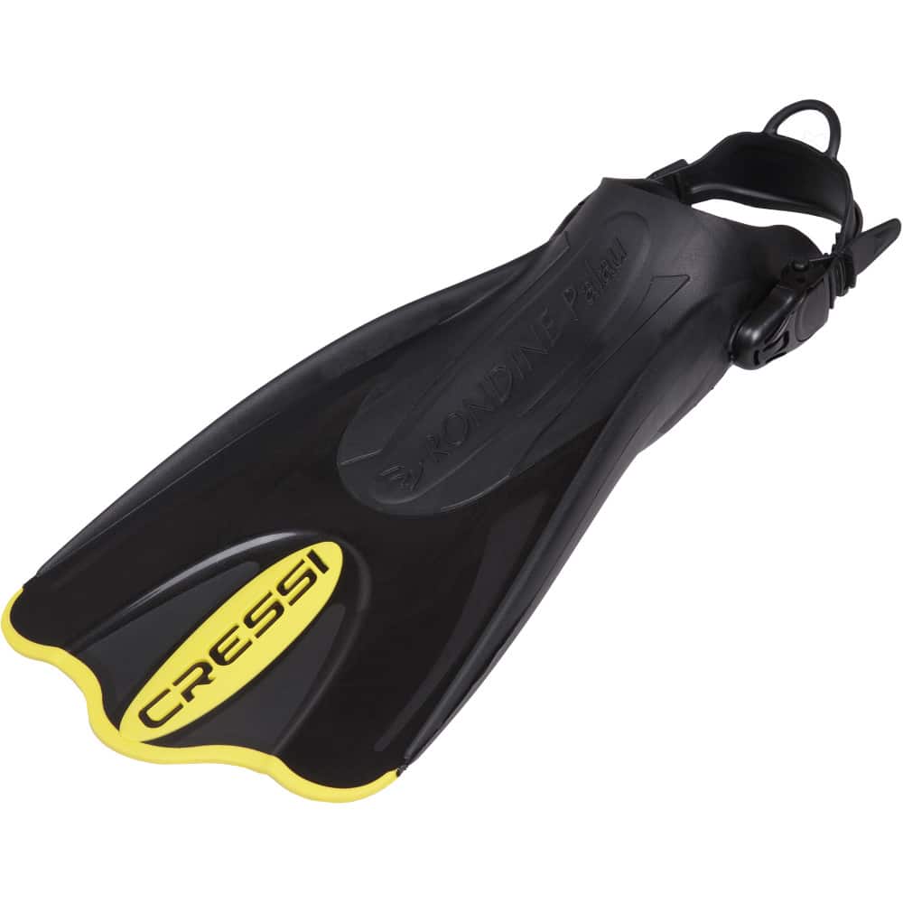 The Cressi Palau SAF Fins (black/yellow) offer versatility and comfort for snorkeling and swimming adventures. Designed for travelers, these fins fit easily in your luggage. The open-heel design ensures a snug fit for various foot sizes.
